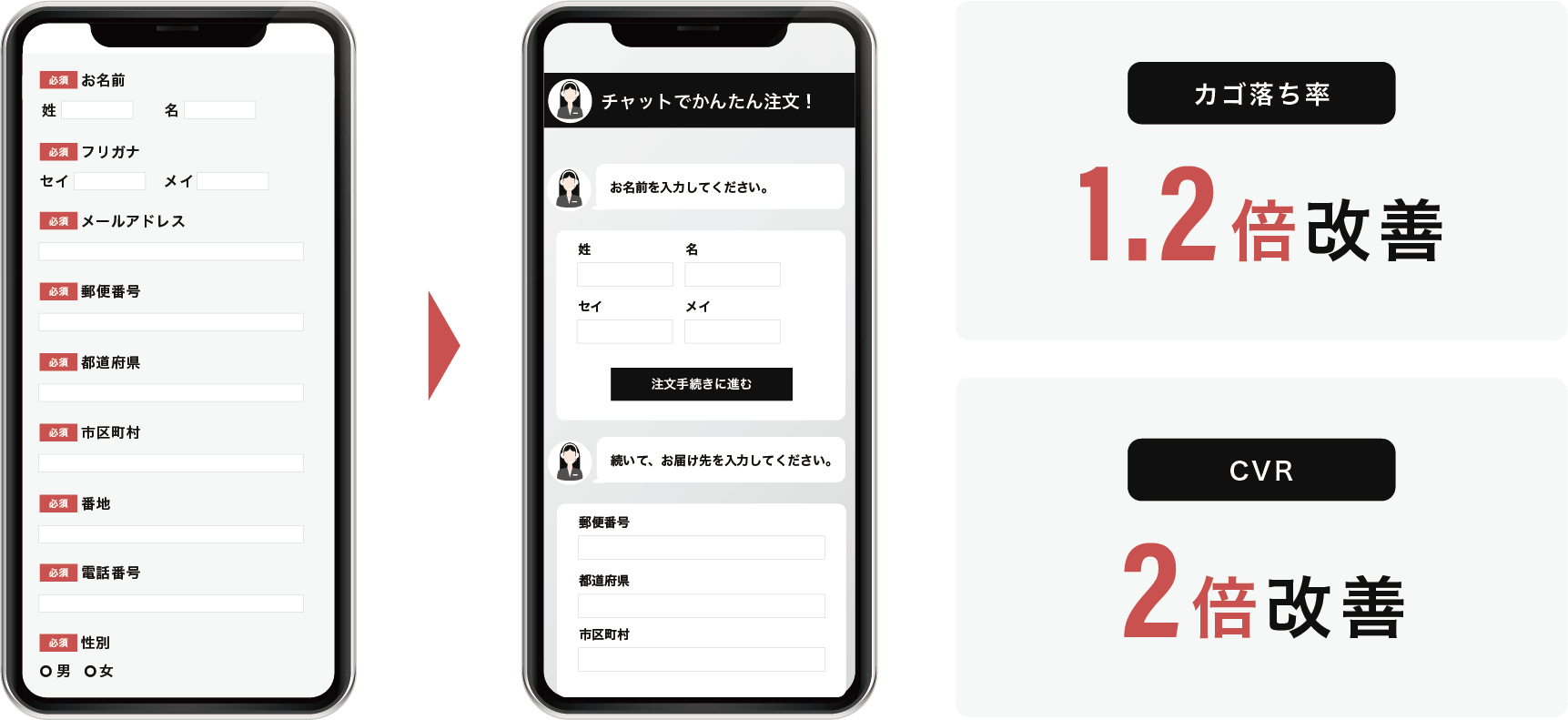 カゴ落ち再訪率2倍、新規CVR2倍、アップセル率2倍、